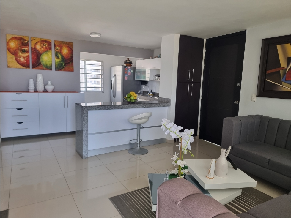Pero eso no es todo, este apartamento también ofrece características internas que lo hacen aún más atractivo. Disfruta de un balcón con una impresionante vista panorámica de la ciudad y el mar, ideal para relajarte y disfrutar de un buen café. También cuenta con baño auxiliar y baño en habitación principal, una moderna barra estilo americano, citófono/intercomunicador, amplios clósets, depósito y zona de lavandería.
